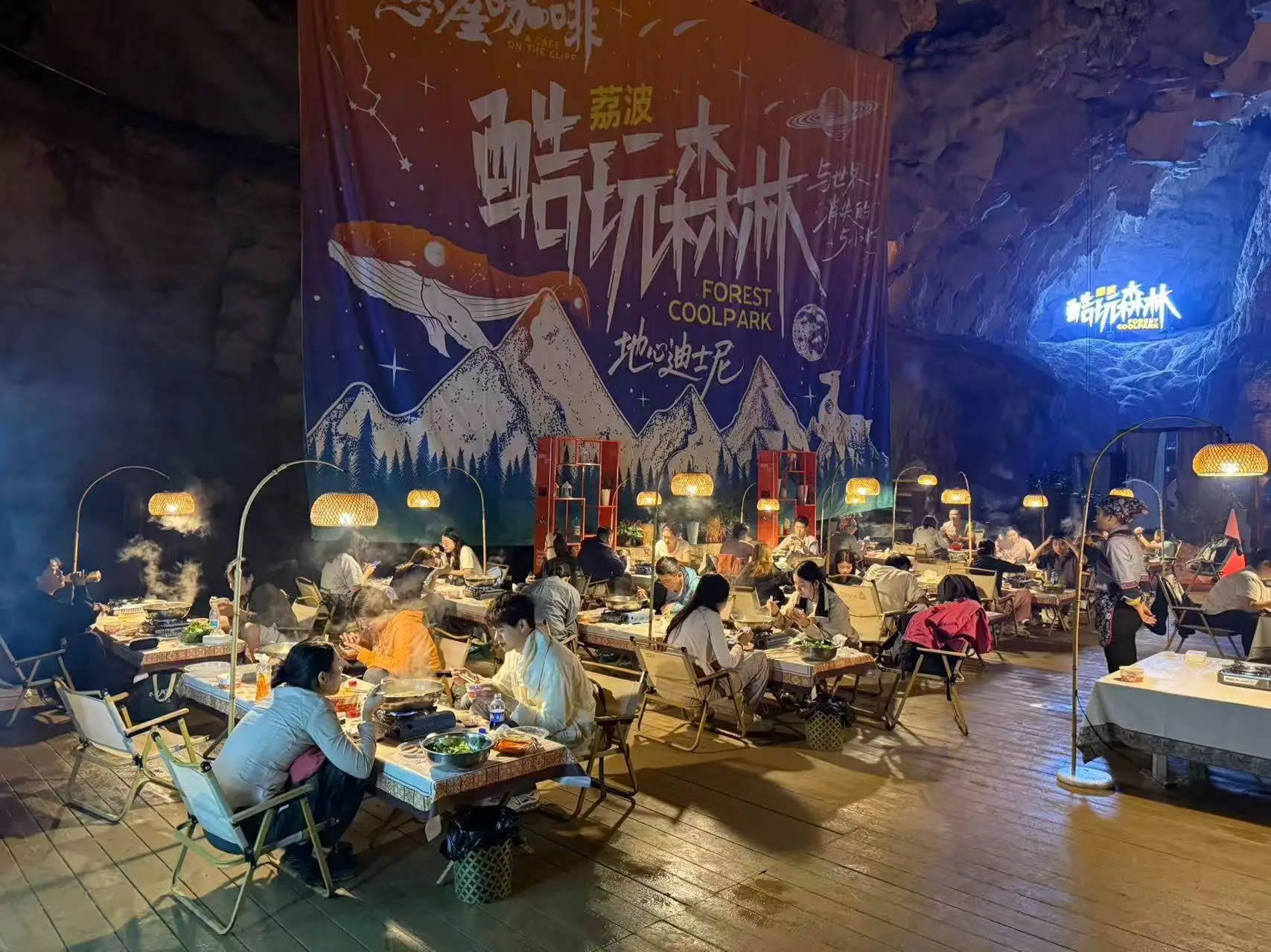 河北游客張瑜說:“這里非常好玩,是之前沒有過的體驗。在溶洞里吃火鍋,氛圍很獨特,是一次全新的體驗。”