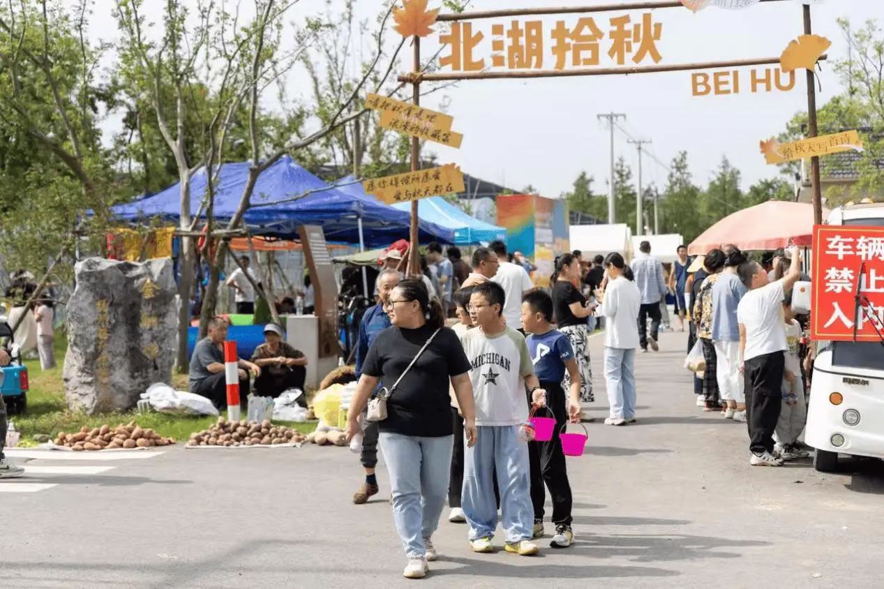走進(jìn)利民村“北湖拾秋”活動(dòng)現(xiàn)場(chǎng),田園間的鮮活氣息撲面而來(lái)。39.9元游玩套票搭配手繪版《北湖漫游手冊(cè)》,成為游客開(kāi)啟體驗(yàn)的“出行標(biāo)配”。手冊(cè)不僅標(biāo)注點(diǎn)位,更暗藏“集章抽獎(jiǎng)”趣味,而“蛋蛋王國(guó)”尋彩蛋、“吃雞獵場(chǎng)”抓活雞、“捕魚達(dá)人”撈小魚等互動(dòng)項(xiàng)目,讓親子家庭在追逐嬉鬧中沉浸式解鎖農(nóng)耕野趣;手作稻草人守護(hù)松茸田、非遺魚燈點(diǎn)亮秋日祈愿等“秋作”體驗(yàn),則讓游客在指尖創(chuàng)作中觸摸鄉(xiāng)村文化肌理。尤其是9.9元的“一米菜田”認(rèn)領(lǐng)計(jì)劃,既圓了城市人“躬耕田園”的向往,更通過(guò)“認(rèn)養(yǎng)+托管”模式為村集體帶來(lái)長(zhǎng)期穩(wěn)定收益,實(shí)現(xiàn)“游客得樂(lè)趣、集體增收入”的雙贏。