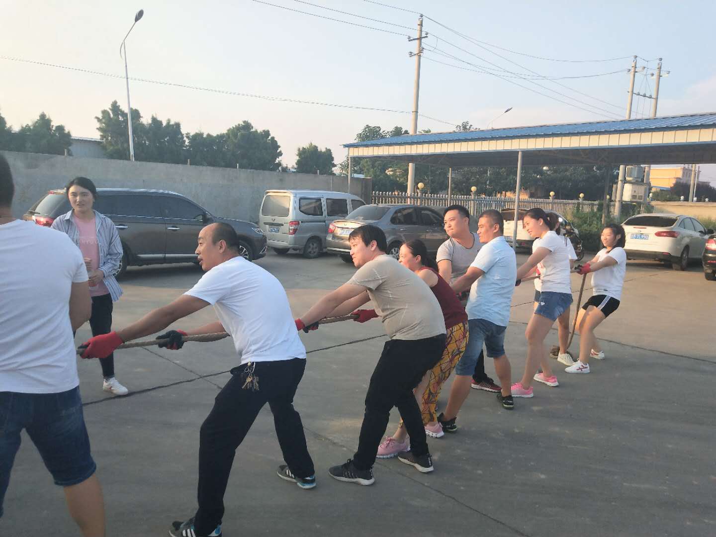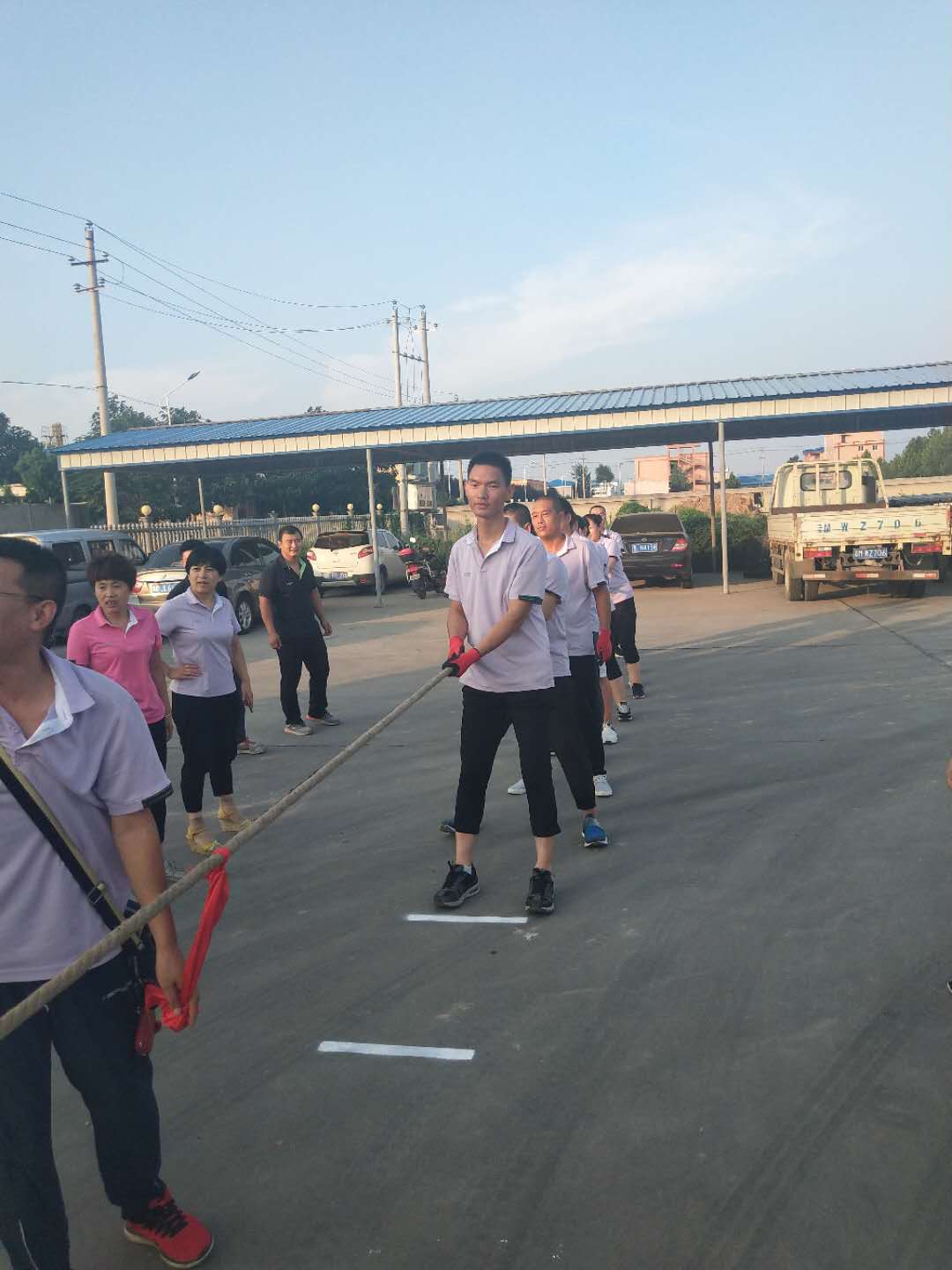當(dāng)比賽的哨聲響起,只見參賽的隊(duì)員們緊握長繩,卯足了勁拼命往后拉!公司領(lǐng)導(dǎo)也在隊(duì)伍旁邊助陣!